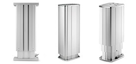 Thomson升降柱設(shè)計用于平滑、安靜及快速的應(yīng)用場合,并且可以提供優(yōu)異的伸縮比,運動范圍大、占用空間少。升降柱以相互滑入嵌合的陽極氧化擠出鋁型材為主體,可提高直線運動解決方案的靈活性。高力矩負(fù)載能力,支撐能力與結(jié)構(gòu)尺寸比值大,既可使用一個單元支撐一個集中負(fù)載,也可將幾個單元聯(lián)接在一起使用,從而可實現(xiàn)多種設(shè)計配置。